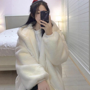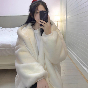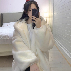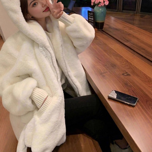 2025年冬季新款韩版保暖通勤休闲中长款连帽仿羊羔毛外套韩系女
