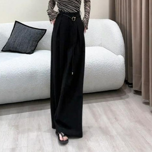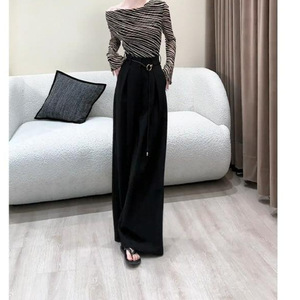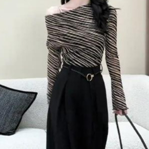 2025秋季新款条纹斜领长袖打底上衣女高腰宽松西装阔腿裤两件套