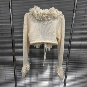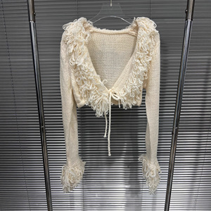 2025年早秋新款复古流苏针织开衫宽松慵懒风小众时尚设计系带套装