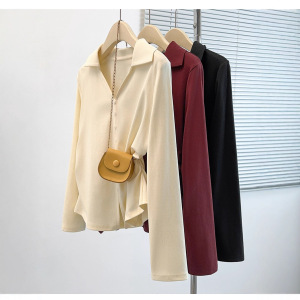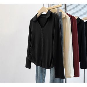 2025秋装新款胖mm大码女时尚休闲v领开叉显瘦长袖T恤上衣