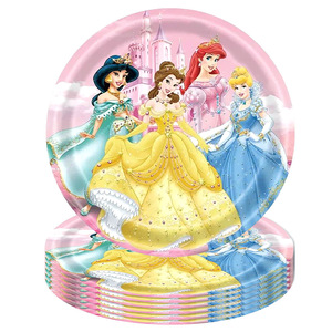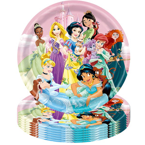 新款卡通奇缘粉色爱莎六公主生日派对纸盘桌布场地布置装饰用品