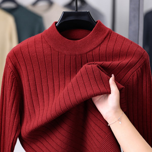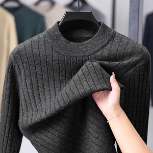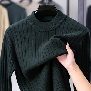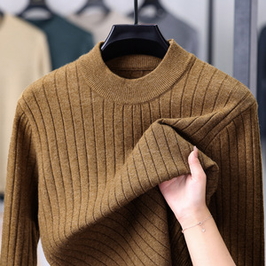 半高领针织衫男秋冬新款精纺提花毛衣男士条纹时尚百搭加厚打底衫