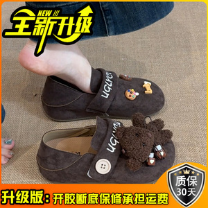 时尚百搭复古风圆头平底勃肯鞋女潮2025秋季小熊布偶新款百搭单鞋