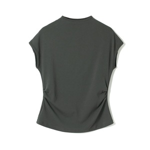 凝夜紫·小飞袖连肩立领T恤·侧捏褶收腰·弧摆打底衫秋短袖上衣