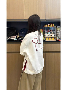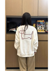 背后空心小狗长袖国潮牌宽松秋冬季复古撞色刺绣情侣t恤上衣