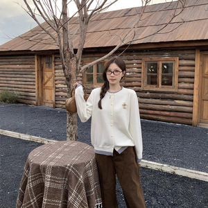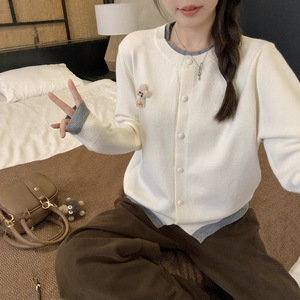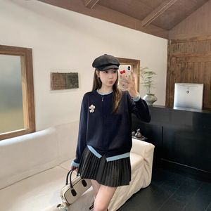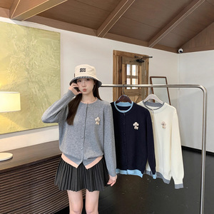 2025秋季新款胖mm大码女撞色甜美贴布小狗长袖针织开衫上衣