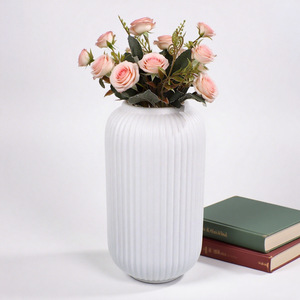 批发白色竖条纹塑料花瓶艺术插花高级感桌面花瓶灯笼水培创意花瓶