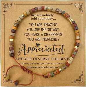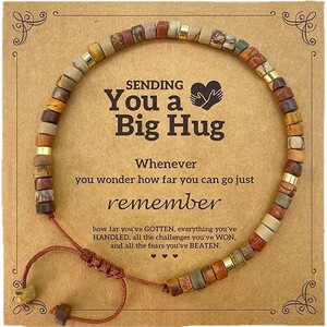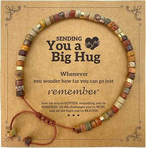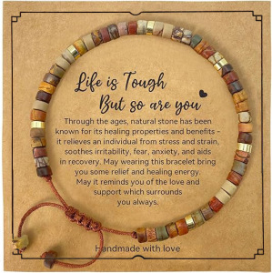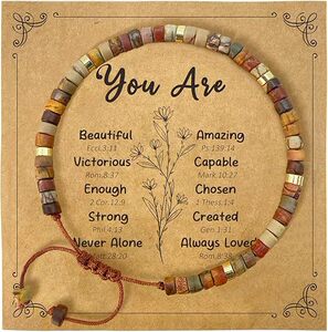 天然石毕加索可调节手绳车轮片编织手链手工编制字母卡片节日礼物