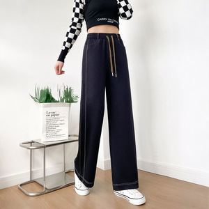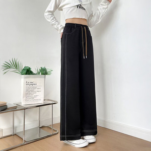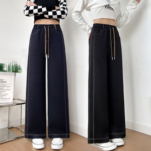 人字纹单宁风松紧腰牛仔裤女秋季上新高腰显瘦垂感百搭休闲裤2580