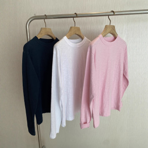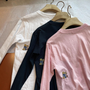 刺绣圆领长袖t恤女春秋2025新款韩版ins宽松打底衫韩系漂亮小上衣