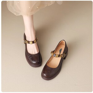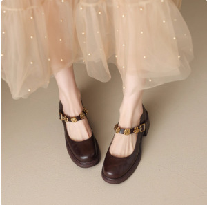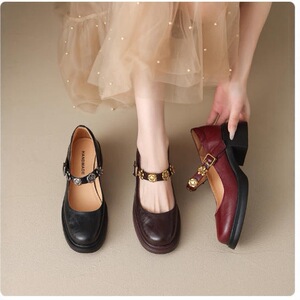 ins 踩屎感!店主自留!复古圆头花朵一字带粗高跟单鞋女玛丽珍鞋