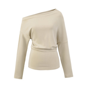 斜肩一字领长袖T恤女2025秋季款设计感修身气质露肩显瘦打底上衣