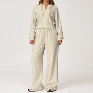 跨境休闲运动卫衣套装女宽松显瘦高级感套装跑步健身舒适套装2044