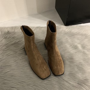 2025秋冬季新款极简软皮方头百搭低跟马丁靴女后拉链平底瘦瘦短靴