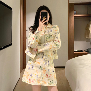 网红韩版甜美牛仔裙套装时尚春秋装女新款洋气纯欲风小个子裙子