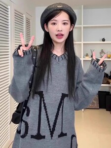 【官网正品】matinkim针织毛衣v领字母提花毛衣上衣情侣款秋冬款