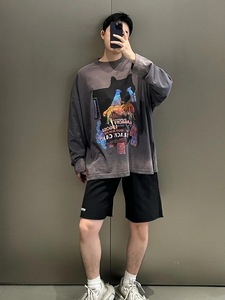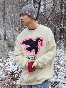 潮牌高街WE11立体印花小熊休闲宽松情侣T恤男女同款卫衣外贸批发