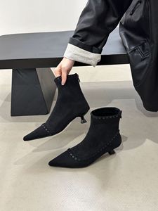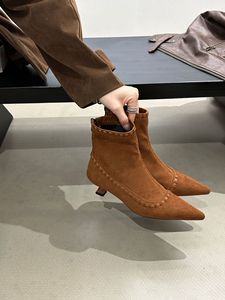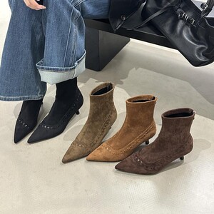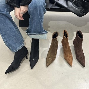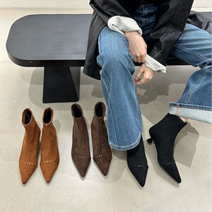 2025新款绒面高跟女法式日常显瘦短靴弹力时装靴子网红瘦瘦靴单靴
