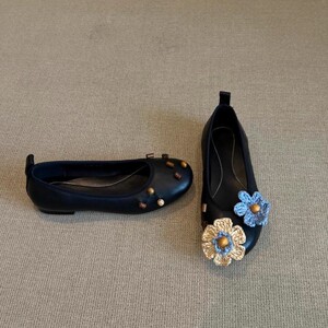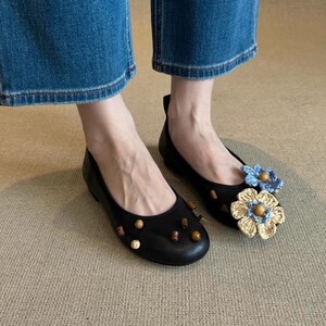 羊皮版~小众设计感花朵浅口单鞋女2025新款真皮平底鞋一脚蹬瓢鞋