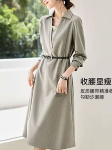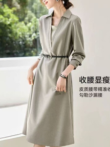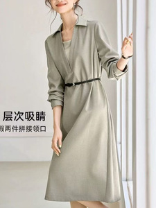 静奢老钱风高级感假两件连衣裙2025秋季新款韩版通勤收腰显瘦裙子