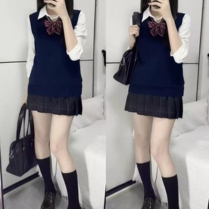外搭叠穿马甲毛衣纯色基础V领JK制服套头背心秋冬日系学生学院风