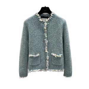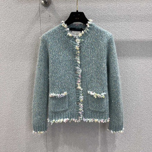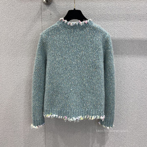 彩色毛边圆领针织开衫 甜美小香风显瘦百搭长袖上衣早秋 ZW63359