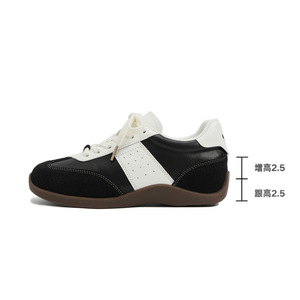 牛皮版~美拉德拼色系带德训鞋女内增高5cm韩版运动休闲板鞋阿甘鞋
