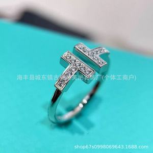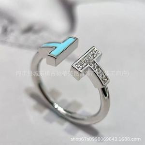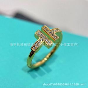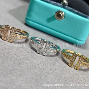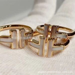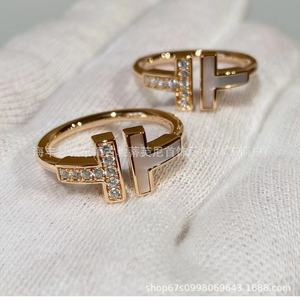 T家高版本V金白贝母双T开口戒指镀18K玫瑰金色满钻指环对版不掉色