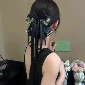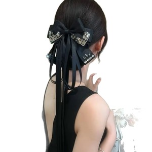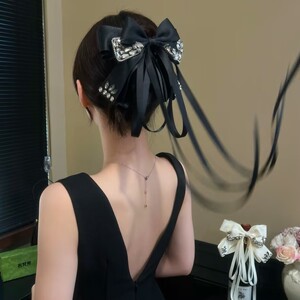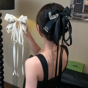 轻奢高级感闪钻多层蝴蝶结长飘带抓夹甜美时尚马尾夹半扎发夹头花