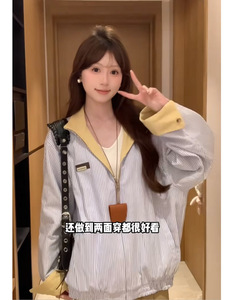 黄色两面穿外套女春秋新款宽松显瘦小个子翻领棒球服工装百搭夹克