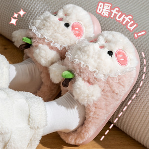 少女心恋恋苹果棉拖鞋女款2025新款室内居家保暖防滑毛毛棉拖鞋女