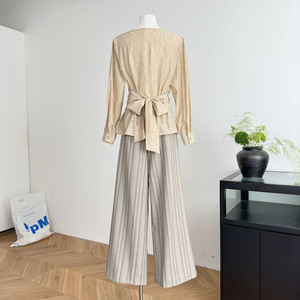 交叉翻领上衣系带收腰设计收腰显瘦优雅气质长袖2025秋季新款
