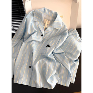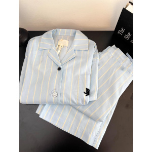 大码条纹睡衣女春秋款长袖套装高级感云朵棉纱布家居服秋季可外穿