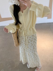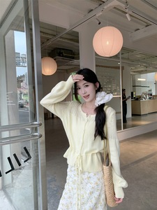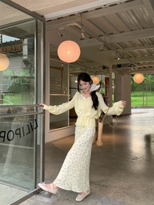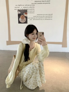 2025新款甜美风套装镂空长袖针织衫女秋季法式碎花半身长裙两件套