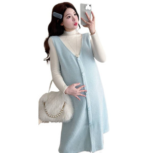 孕妇秋冬新款宽松简约毛衣背心连衣裙+百搭针织打底衫甜美套装女