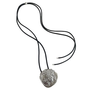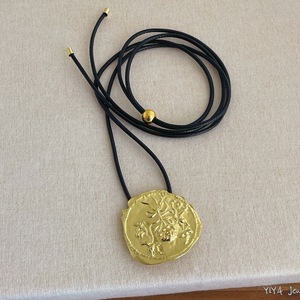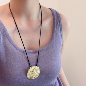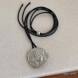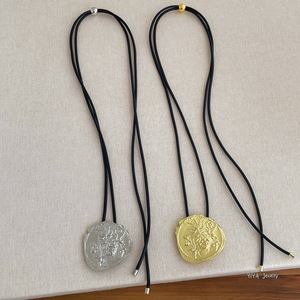 欧美轻奢复古玫瑰浮雕凹凸项链女不规则金属圆牌颈链可调节锁骨链
