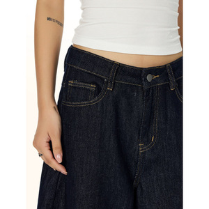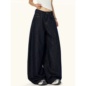 温姗1美式复古凉感薄款高腰阔腿牛仔裤女宽松显瘦百搭垂感长裤潮