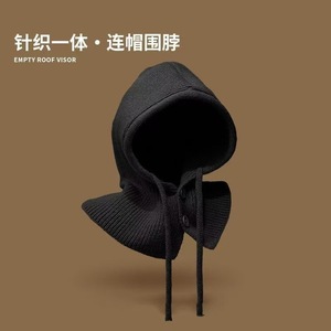 韩国秋冬新款针织帽子女围脖一体两用外搭巴拉克拉法帽护颈披肩帽