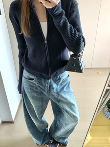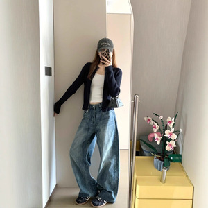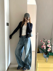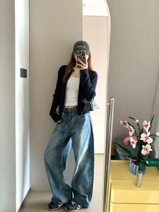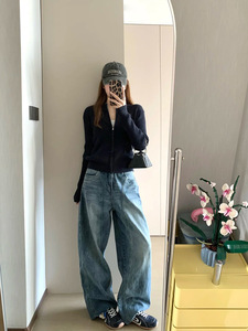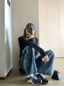 美式复古弯刀阔腿牛仔裤女秋季高腰宽松显瘦梨形身材直筒镰刀裤子
