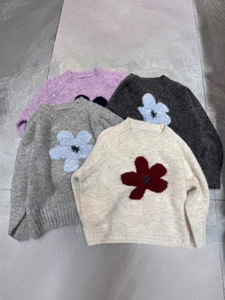 韩系花朵提花圆领毛衣女2025秋冬宽松洋气短款套头毛针织衫上衣潮