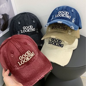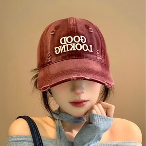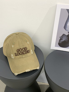 欧美破洞字母刺绣水洗棒球帽男女春秋户外显脸小新款时尚鸭舌帽子