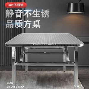 出租房304特厚不锈钢折叠正方形桌学校工地方便收纳长桌家用商用