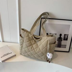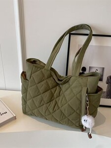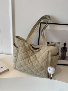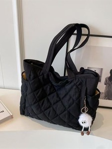 2025秋冬新款菱格棉服单肩包韩版大容量轻便托特包女大学生补课包