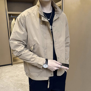 韩版潮流立领夹克男士2025春秋季新款修身百搭纯色休闲外套男上衣