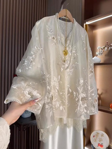 现货新中式国风穿搭清冷感禅意风衬衫2025秋款气质氛围感提花上衣