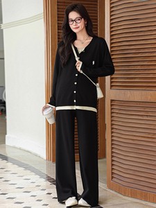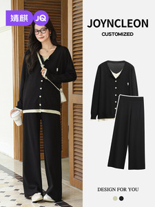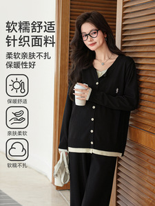 婧麒孕妇装2025新款秋季假两件针织套装孕期宽松时尚孕妇高级秋装