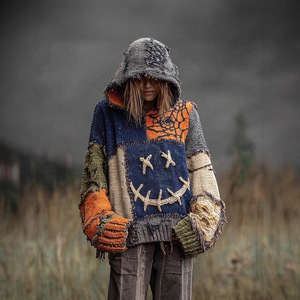 2025新款欧美跨境爆款秋冬宽松连帽上衣休闲落肩复古女装印花卫衣