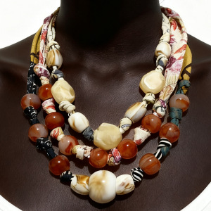 跨境欧美个性潮流简约时尚手工编织布艺串珠多层叠戴几何休闲项链