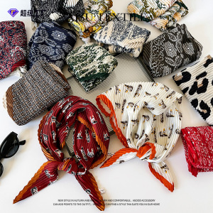 爆款70褶皱韩版小方巾女春秋夏季文艺复古小丝巾时尚百搭小领巾