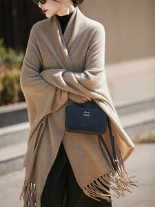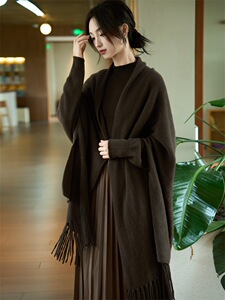 法式慵懒风针织开衫毛衣外套女装秋高级感蝙蝠袖外搭流苏斗篷披肩